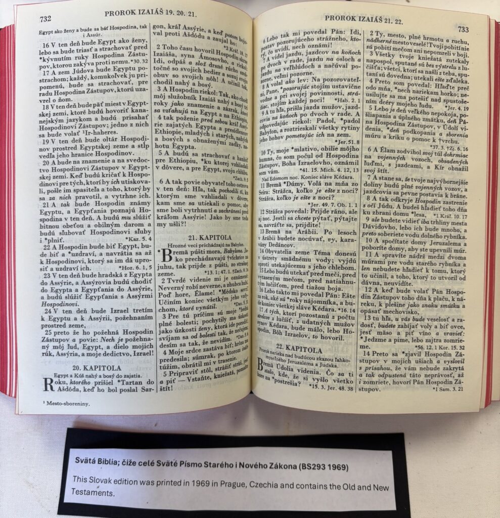 This Slovak edition was printed in 1969 in Prague, Czechia and contains the Old and New Testaments.